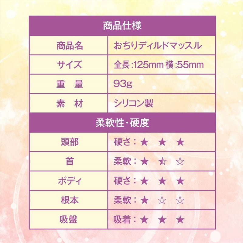 100%高品質シリコンの吸盤一体型ディルド。先端、コブ、ボディはまさにムキムキ重量級!全長125mm男女兼用、丸洗いOK