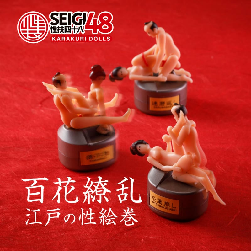 江戸の粋と笑いがゼンマイで動き出す!浮世絵に描かれた性技四十八手"を、まさかのからくり人形で再現!?その名も『SEIGI48KARAKURIDOLLS』です。ゼンマイを回せば、思わずクスッと笑ってしまうような、江戸の色ごとが艶やかに、そして滑稽に踊り出す。歴史とエロス、そしてユーモアが融合した、まさに"大人のためのジョークグッズ"に仕上げました。現代でも人気の高い?!体位の『松葉崩し』、カクカクと動く様子は江戸時代にも通じる"粋"を感じるかもしれません。観賞用としても、プレゼントとしても話題性抜群!ちょっと疲れた心に、粋な笑いと艶をひとつどうぞ。"
