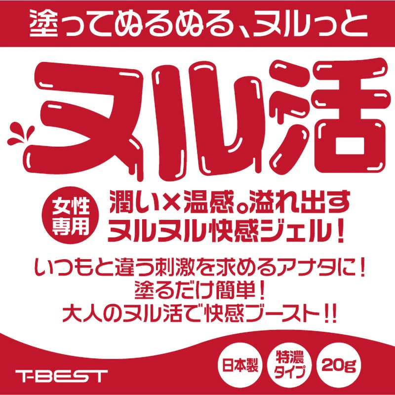 いつもと違う刺激を求めるアナタに!塗るだけ簡単!大人のヌル活で快感ブースト!!潤い×温感。溢れ出すヌルヌル快感ジェル!安心・安全の日本製。内容量:20g