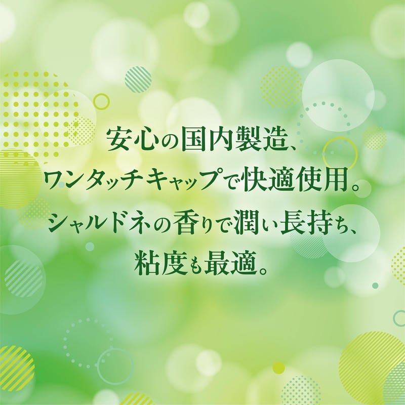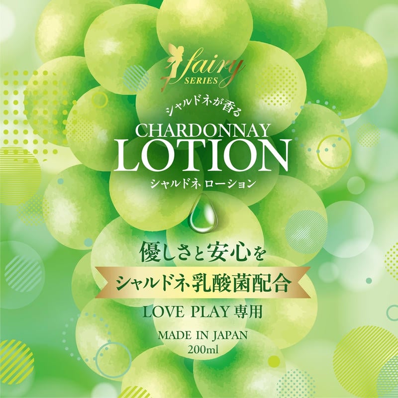 香りが誘う、艶やかでラグジュアリーなラブタイムへ──。みずみずしく洗練された香りがふわりと立ちのぼる「フェアリーシリーズシャルドネローション」が新登場。〈フェアリーシリーズ〉はトキメくひとときを大切に"という想いで、香りと潤いで深く豊かな贅沢をお届けします。「シャルドネ」とは"白ワインの女王"と称される白ブドウの品種。その芳醇な香りは、トロピカルでフルーティーな華やかさで多くの人を虜にする、香水やフレングランスなどでも大人気な香りです。その魅惑的な香りを、贅沢にローションへと凝縮しました。触れた瞬間に、深く甘美な余韻が全身を包み込み、まるで香りに身を委ねるような優美なラブタイムへ。優しさと安心のシャルドネ乳酸菌配合。ラブプレイ専用に最適に調整されたモイストテクスチャー。使いやすいワンタッチキャップ。信頼の日本国内製造。シャルドの匂いにふさわしい、ラグジュアリーなラブローションです。"