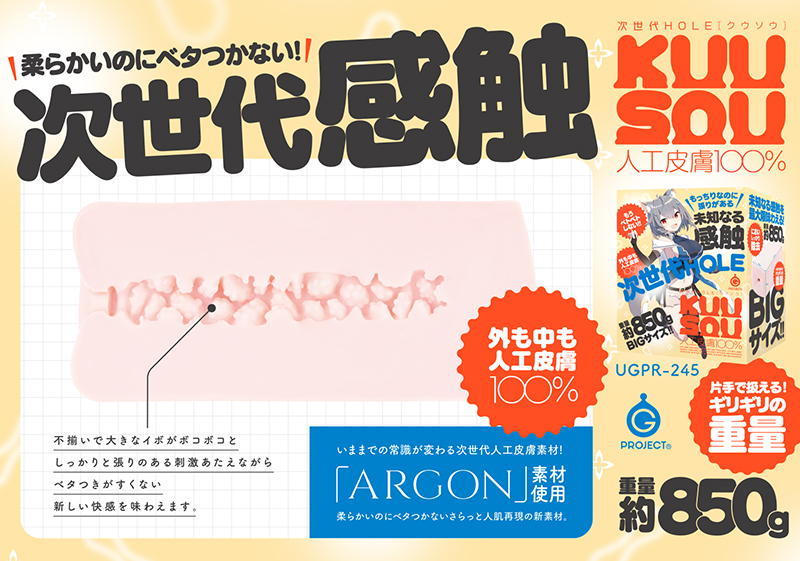 知らない世界、リアルでは存在しない、空想。KUU-SOUは「出会ったことない女の子を再現」するために開発されたオナホールをしております。今回は柔らかいのにベタつかない人工皮膚素材「ARGON」を外だけでなく中まですべて100%使用!ベタつかないことで起伏部どうしが潰れない為、張りのある新しい感触をご提供。約850gのBIGサイズでお楽しみください。イラストレーター:伍長検査番号:2201562▼商品紹介動画はコチラ!モニター用AVI販促動画はこちらモニター用MPEG販促動画はこちら!フォトフレーム用AVI販促動画はこちらフォトフレーム用MPEG販促動画はこちら■商品サイズ(mm) 縦175横140奥行100 ■商品重量(g) 960 ■本体サイズ(mm) 縦175×横80×奥行80 ■本体重量(g)、内容量(ml) 850 ■付属品 GPROJECTxPEPE 5ml ローション -