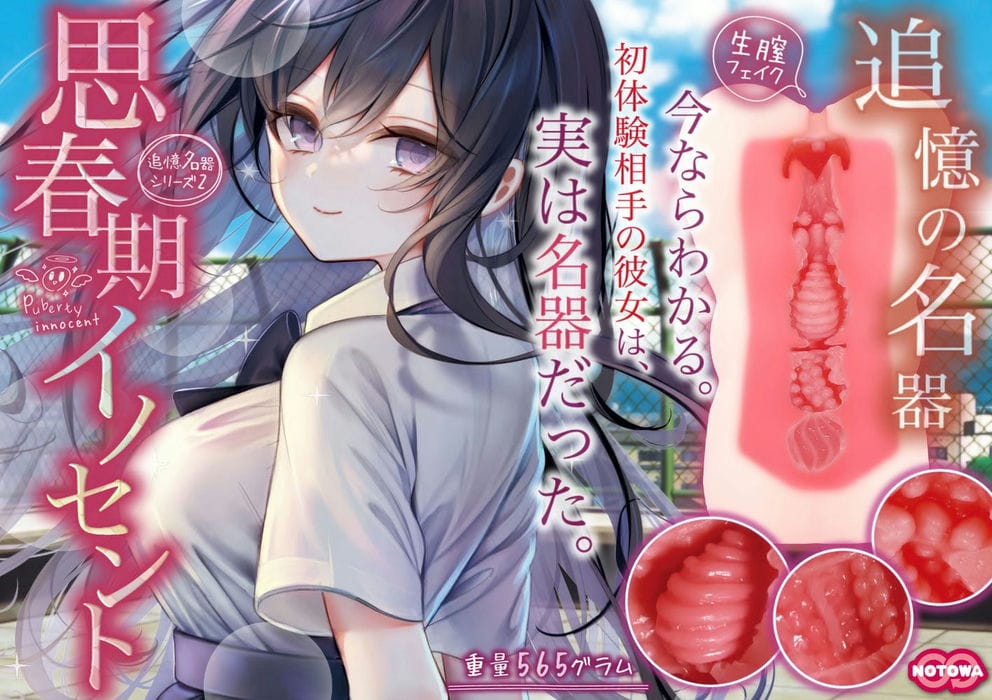 「今ならわかる。初体験相手の彼女は、実は名器だった」ふと思いだすことはありませんか?「そういえば、元カノ気持ち良かったな」とか。思春期イノセントはそういった追憶の名器"の具現化をコンセプトとしたオナホールです。内部構造は代表的な名器と云われる「俵締め/数の子天井/みみず千匹/たこ壺/巾着」を模したギミックを搭載。思春期の"生チ〇"をイメージした"桃彩二層構造"のリアル感触も相まって、まるで"本物名器"のような使用感をご堪能いただけます。ボディは全長160ミリ、重量565グラムと扱いやすいミドルサイズ。素材はNOTOWAオリジナルの人工皮膚素材「no.18スキン」を採用。思春期乙女の肌質を再現しながら、嫌なゴム臭・べたつきを極限カットした素材です。(オリジナルローション同梱/パッケージイラスト:こーやふ)"■商品サイズ(mm) 縦180横112奥行85 ■商品重量(g) 665 ■本体サイズ(mm) 縦160横90奥行85 ■本体重量(g)、内容量(ml) 565 ■付属品 ミニローション -
