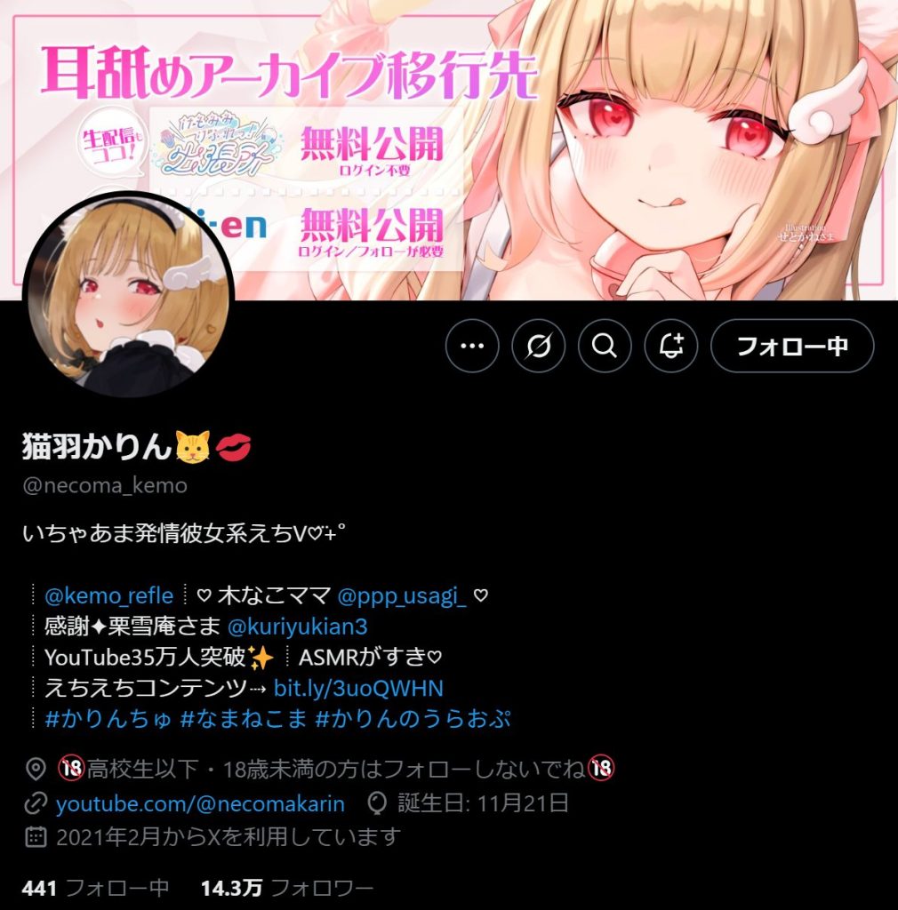 ※「猫羽かりんX(Twitter)アカウント」2025/06/17現在