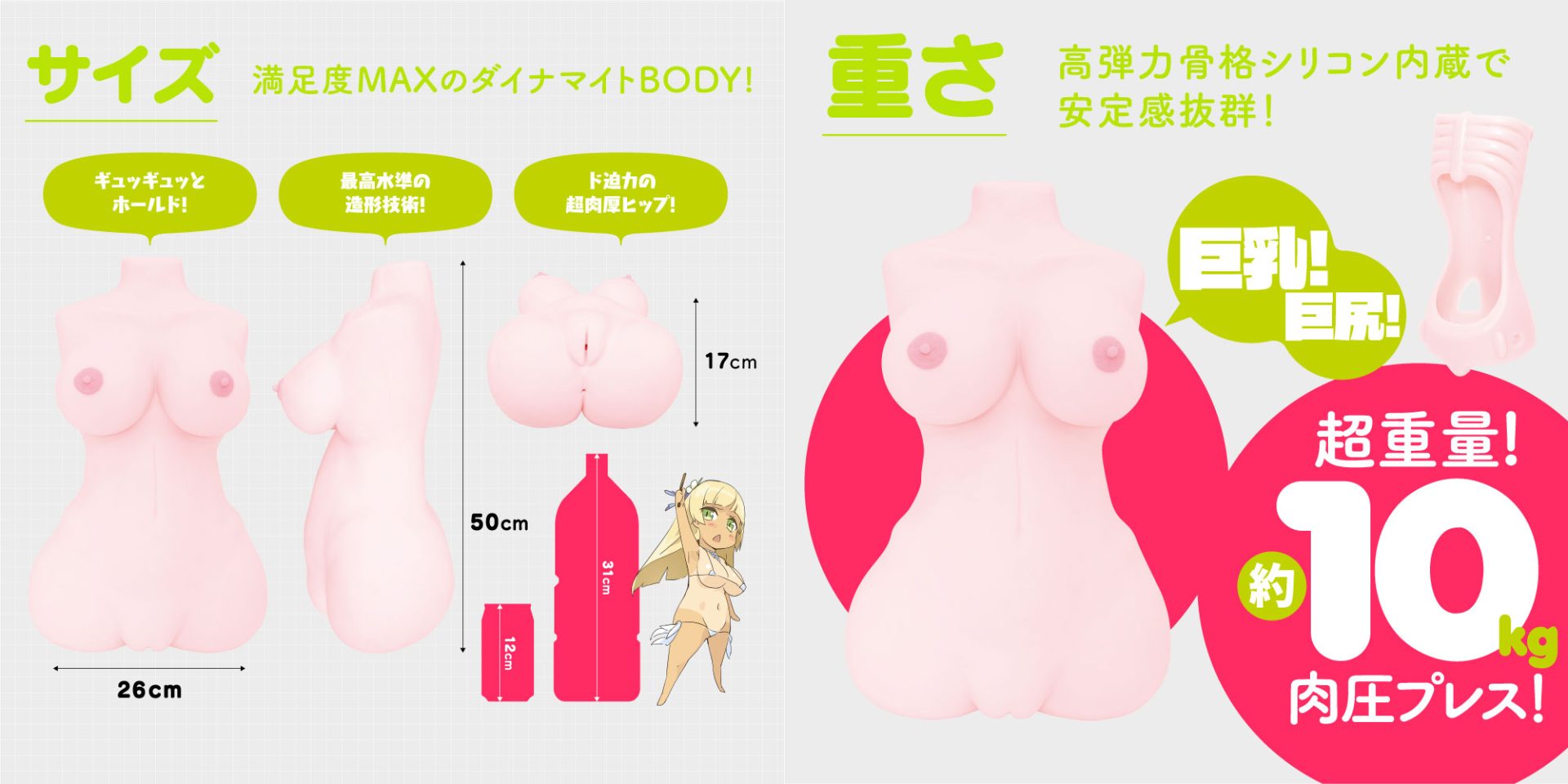 高弾力骨格シリコン内蔵で安定感抜群の巨乳と巨尻!リアルな抱き心地を完全再現しました!