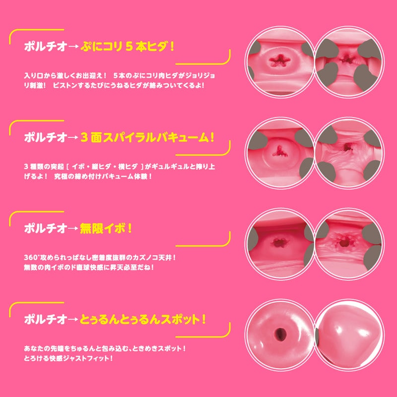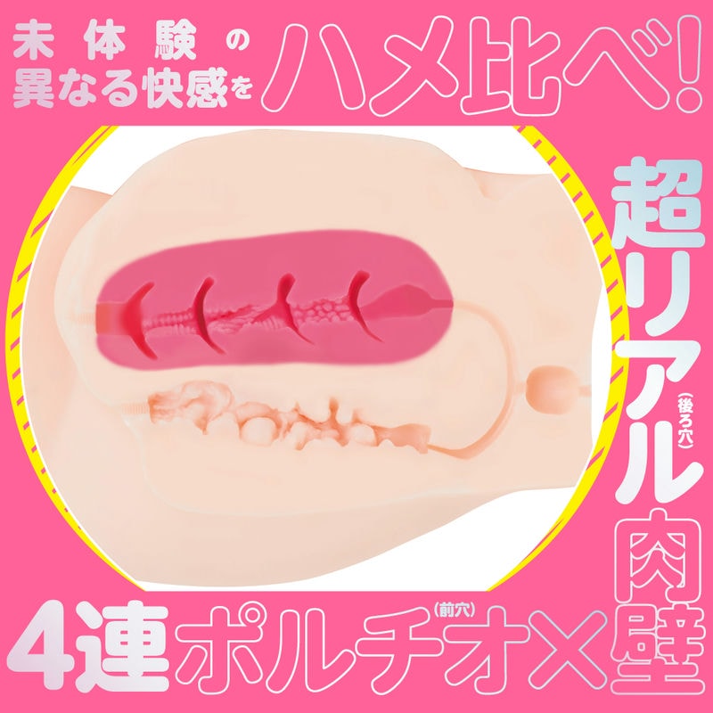 こだわりの内部構造は、4連ポルチオ[前穴]×超リアル肉壁[後ろ穴]で未体験の異なる快感をハメ比べしてください。